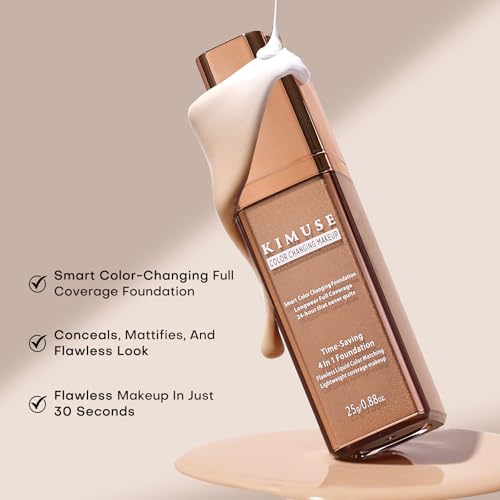 KIMUSE Color Changing Foundation, 4 In 1 Smart Shade Skin Tone Foundation Makeup, Waterproof & Long Wear with Glycerin & Sodium Hyaluronate Tinted Moisturizer Face Makeup For All Skin Tones
