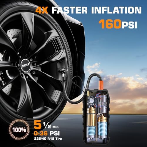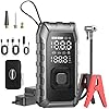 - 【12000mAh & Dual Cylinder Air Pump】Portable Air Compressor for Tires is built with a high-density lithium battery, can be started in any extreme environment, for All Gas and 10.0L Diesel Engines. 180PSI dual cylinder air compressor, tire inflation speed increased by 50%.