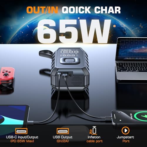 - 【Multifunctional & Professional Configuration】40cm ultra-thick pure copper cable (20% longer than ordinary models), -40℃ antifreeze rubber wrap. Comes with splash-proof spark clip, air pump hose, EVA storage bag, and multiple inflator nozzle adapters. In addition, it also integrates a 400-lumen LED flashlight with multiple lighting modes, including emergency strobe and SOS emergency rescue.
