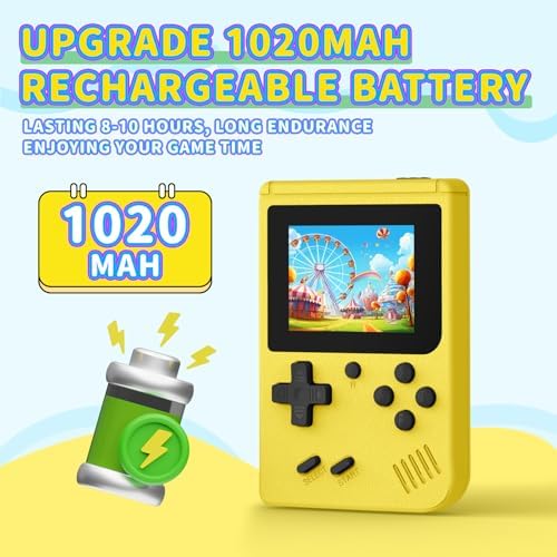 - Rechargeable battery - Portable Game Console built-in 1020mAh Rechargeable lithium battery. Never worry about changing battery while electricity runs out. The game can play for up to 6 hours each time it is fully charged