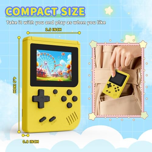 Retro Gaming Console, Portable Video Game Console with 3.0 inch IPS Screen and Preloaded 400 Classic Video Games, Mini Retro Handheld Game Console (Yellow)