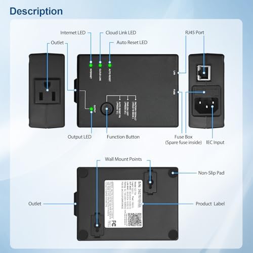 ezOutlet5 IP Enabled Remote Power, Ping Auto Reboot, Single Outlet, 10A Fuse, WiFi & LAN, Cloud & APP.