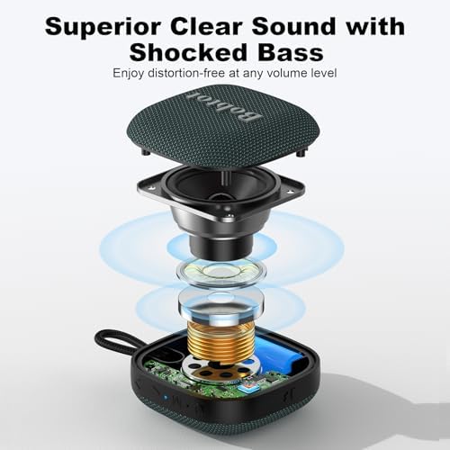 Bobtot Portable Bluetooth Speakers, Wireless IPX7 Waterproof Mini Speaker with 16H Playtime, Loud Stereo Sound, TWS, Built-in Microphone, Small Size with Lanyard, Darkblue