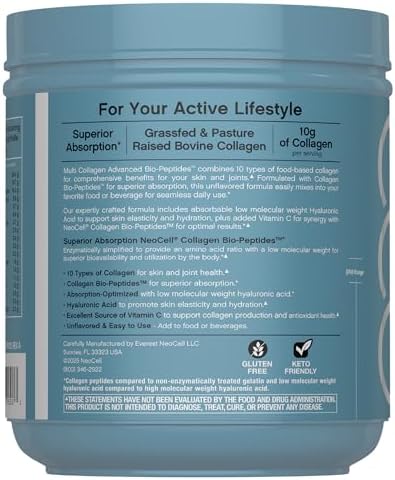 NeoCell Multi Collagen Bio-Peptides Powder | 22oz | Advanced with Hyaluronic Acid and Vitamin C | 10 Super Types of Collagen | Superior Absorption | Grassfed Protein Supplement