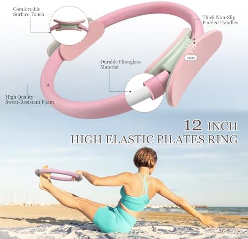 - 【Pilates Ring and Ball】: 12 inch Pilates Ring is made of high-quality elastic fiberglass, covered with comfortable sweat-proof sponge, and the handles are equipped with thick foam pads. 9 inch Pilates ball is non-slip and durable, and comes with a straw for easy inflating. They can effectively help you complete most Pilates movements and strengthen your core and whole-body muscles