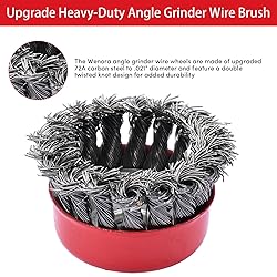 [Complete 12-Piece Professional Wire Brush Kit]Get 3x aggressive 4" knotted wire wheel for angle grinder, 3x 4" coarse crimped angle grinder wire wheel, plus 3x 3" knotted and 3x 3" crimped cup brushes. Perfect combination for tackling tough rust, paint, and weld spatter removal on metal surfaces. [Heavy-Duty Carbon Steel Construction]Industrial-grade grinder wire wheel set features durable 0.02" knotted and 0.014" crimped steel wires with reinforced double-plate design. The universal 5/8"-11 UNC threaded arbor fits most 4-1/2" angle grinders and withstands up to High RPM for demanding jobs. [Ultra-Safe Performance]Our wire brush for grinder features a unique double-reinforced steel plate system that prevents wire breakage while maintaining perfect balance even at maximum operating speeds. The premium carbon steel wires resist snapping during aggressive use. [Versatile Metalworking Solution]These professional wire wheels handle everything from light surface cleaning to heavy corrosion removal. Ideal for auto restoration, metal fabrication, weld preparation, and surface finishing before painting or powder coating applications. [Quick-Install Design]All angle grinder wire wheels feature standard 5/8"-11 arbors for tool-free installation on most grinders. The included variety of brush types and sizes provides the right tool for every metal cleaning and preparation task.