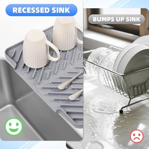 - DIMENSIONS: Perfectly sized at 15.7" x 12.2", this silicone dish drying mat provides ample space for your kitchen counter organization