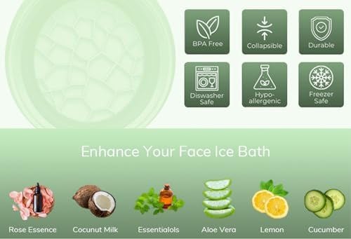 Face Ice Bowl for Facial Ice Bath - Portable Durable Bowl for Face Ice Bath, Designed for Skin Tightening & Pore Minimizing. (Green)