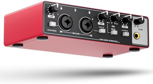 - Professional-grade Audio Quality (24-bit/192kHz): Studio-QUALITY Recording, The audio interface delivers studio-quality clear recordings, accurately capturing every detail of vocals and instruments, meeting broadcast-grade audio quality requirements. our advanced circuitry eliminates that annoying background hiss, Meanwhile the headphone jack enables zero-latency, low-noise monitoring.
