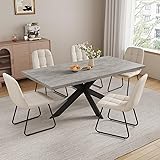 【Retractable Design】 The dining table can extend from 51 inches to 63 inches, easily seating 6-8 people, suitable for family dinners or friends gatherings. 【Solid Metal Frame】Use thickened carbon steel bracket, strong load-bearing, stable and anti-shaking, and durable. 【6 PU leather dining chair】High density sponge cushion + waterproof PU leather, comfortable sitting feeling, convenient cleaning, and enhance dining experience. 【Small apartment friendly】It is only 51 inches after shrinking, suitable for compact restaurants; it provides spacious dining space after expansion, which flexibly adapts to different needs. [Modern and Simple Style] Matte gray table top + white dining chair, versatile and diverse decoration styles; smooth table top is cleaned at one wipe, which is worry-free.