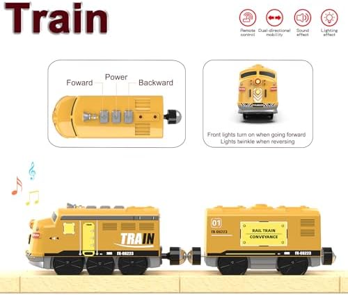 Motorized Train for Kids, Remote Control Locomotive Train Toy for Wooden Tracks, Battery Powered Electric Trains with Sound & Lights Effects Compatible with Thomas, Brio, Chuggington