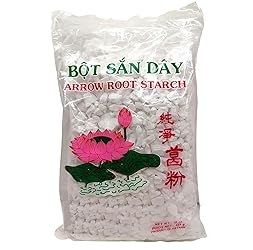 AUTHENTIC VIETNAMESE: Traditional Bot San Day arrow root starch chunks imported from Vietnam, perfect for Asian cuisine and cooking applications PACKAGE SIZE: Contains 16 ounces (454g) of pure arrowroot starch chunks in a convenient resealable bag NUTRITIONAL FACTS: Low calorie with 110 calories per 1/4 cup serving, 0g fat, and 24g of carbohydrates VERSATILE USE: Ideal thickening agent for sauces, soups, and desserts, providing a clear, glossy finish to dishes DIETARY FEATURES: Naturally gluten-free, contains no fat, cholesterol-free, and low in sodium with only 15mg per serving