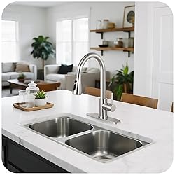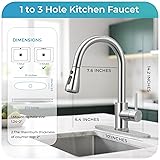 Sleek Pull-Out Design: Elevate your kitchen with the 14.25'' kitchen sink faucet, featuring a flexible spout for easy water direction Modern Pull Down Feature: Enjoy an 18-inch flexible hose and brushed nickel finish in this kitchen faucet with pull down sprayer, perfect for a sleek upgrade 3-Spray Settings: Choose from STREAM, SPRAY, or PAUSE for versatile water options in your kitchen faucets, delivering stable pressure Effortless Temperature Control: Adjust water flow and temperature via a single handle and 360-degree swivel spout on this kitchen sink faucet, with a sprayer head that retracts automatically Easy Installation and Durable Build: Hassle-free installation includes tools, rust-resistant metal construction, and a ceramic cartridge. Complies with CEC/DOE regulations for reliable use