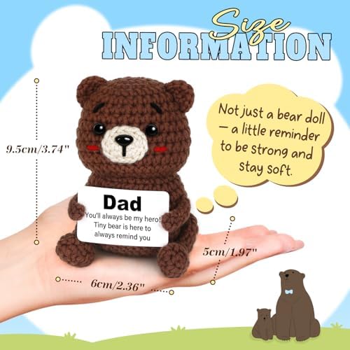 - Thoughtful Gift for Dad :A cute and portable crochet bear that brings warmth and smiles wherever he goes! More than just a plush, it includes a heartfelt card that reads, "Dad, you'll always be my hero! Tiny bear is here to always remind you." A meaningful way to show your love and affection every day