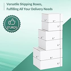 Dimensions and Quantity: Eupako small shipping boxes for small businesses come in three convenient sizes: 5x5x5 inches, 6x6x6 inches, and 8x6x6 inches. Each size is available in a pack of 10, totaling 30 shipping boxes small. These sturdy small mailing boxes are ideal for safely shipping small items, including soap, glass bottles, candles, pins, books, mugs, cookies, cosmetics, toys, and clothing Durability: Crafted from sturdy cardboard, these mailer boxes for shipping are designed to withstand the rigors of transportation and delivery, ensuring your products arrive safely. Our small boxes for shipping offer strong load-bearing capacity and resistance to compression Easy Assembly and Storage: These corrugated white shipping boxes small are easy to assemble with quick folding and secure taping, providing excellent packaging protection. Eupako small cardboard boxes can also be conveniently stored flat, saving space when not in use Versatile Use: Ideal for various retail shipping needs, from small items like soap to glass bottles. Also suitable for sending gifts or samples to customers, these small packing box mailers serve as an essential, multifunctional packaging solution for any business Personalization Options: All cardboard shipping boxes feature a rustic finish and come unprinted, allowing you to customize the flat shipping boxes with paint, stickers, stamps, or templates to suit your branding or personalization needs