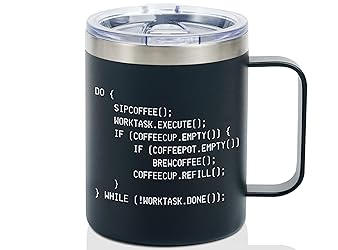 A Great Gift Idea: An ideal computer science, software engineer, and coding gift for coders, programmers on Christmas, Birthday, Special Design: This special design will surely amaze your friends, neighbors, coworkers or relatives who are coders, software enginners, programmers. Super Practical: The lid seals tightly with a rubber seal gasket to prevent spills, which is suitable for any indoor or outdoor activity. The double-wall vacuum insulated design keeps drinks cold for 9 hours or hot for 3 hours. Safe material: BPA free, Food grade 18/8 (304) stainless steel,premium quality No Sweat Design: Thanks to the vacuum-insulated design, Onebttl tumblers never produce condensation. This means no more drips on the table or countertops, eliminating the need for coasters.