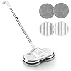 Electric Mop, AlfaBot WS-24 Cordless Spin Mop for Floor Cleaning, Lightweight & Rechargeable Floor Cleaner with Water Sprayer and LED Headlight for Hardwood and Tile Floors, White