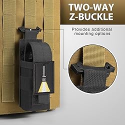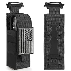 Built to Last: Our tactical flashlight holster is made from tough 1000D nylon and reinforced stitching for long-lasting durability, tear-resistant, wear-resistant. The back features a lightweight and durable malice clip, a sturdy KAM two-way Z-shaped buckle on the top, and a steel drain hole rivet at the bottom. Note: Flashlight not included. Hook&Loop Closure and Adjustable Design: Our tactical flashlight pouch uses the way the magic stickers opens and closes. The detachable hook & loop inside the bag can be adjusted to tighten the flashlight at different heights to prevent it from rubbing and falling off. Free patch make the flashlight case more eye-catching. Easy to Use and Portable: Easy attach this flashlight holster to any of your molle compatible tactical vest, backpack, belt and other equipment to use for additional storage and customization. The two-way Z-shaped buckle at the top provides additional mounting options. Flashlight Pouch Size: 1.9 " L x 1.6 " W x 5.5 " H/ 4.8cm*4cm*14cm, adjustable height of the front cover: 3.7" to 7.8 ", fits flashlights with barrel diameter of 1'' ~ 1.8''. The height of the back clip is adjustable: 1 "to 3", fits most belts. US Patch Size: 1.6" x 2.4" / 4cm*6cm; Flashlight Patch Size: 1.6" x 2.4" / 4cm*6cm. Wide Application: The flashlight holster not only holds a flashlight but also folding knives, multi-tools, magazines, OC sprays, etc. A great supplementary equipment for police, law enforcement, security, firefighters, mechanics, guards, outdoor enthusiasts, etc. Ideal for walking, hiking, camping, fishing, bike riding, dog walking and other daily or duty/patrol shift scenarios.