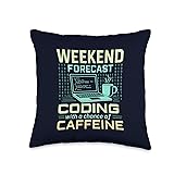 Weekend Forecast Coding & Caffeine Humorous Tech Nerd Throw Pillow
