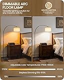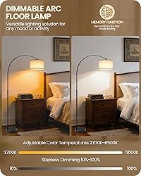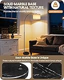 Natural Marble Base: The GOEBLESON arc floor lamp for living room features a natural marble base with an eccentric rod structure. Unlike ordinary plastic or metal bases, the arc floor lamp with remote (lamp weight 13.67lb) is less likely to tip over when placed even on carpet, suitable for families with children and pets. Each marble base is different. These natural marble texture on the base makes each lamp unique Adjustable Height, Arm and Head: The modern arc floor lamp's height adjusts from 63-75 inches, the arm extends 22-29 inches, and the lamp head rotates 350°horizontally and 180°vertically. The light arm is able to be pushed out of the way when not in use. The arched floor lamp with rotating head flexibly fits children's use, adult reading, or lighting by sofas and desks. Affordable corner floor lamps for living room enhance any space with both style and functionality Versatile Dimmer & Timer: You can change the lighting to warmer, whiter or dimmer with ease of the remote, and shuts off in 60 minutes with a timer. The stepless dimmable color temperature (2700K-6500K) and brightness options allow you to customize the lighting to suit any mood or activity. It remembers the last mode setting. The arched standing lamp also has pre-sets for night light, reading, working, or nursing Magnetic Remote & Foot Control: GOEBLESON dimmable floor lamp with remote comes with a remote and a foot switch. The remote is magnetic and sticks onto the pole or any metal surface for easy access. The floor lamp for bedroom with remote is such convenient for setting the brightness and color temperatures from the comfort of your couch or bed. Or just step on the foot switch to turn on and off. Remote and 9W E26 LED bulb included. FCC certified Thickened Metal Pole & Cozy Linen Shade: The lamp pole is made of thickened metal, providing a sturdy structure that is highly resistant to deforming over time. The linen lampshade gives off a warm glow, diffuses bright bulbs nicely, making any room feel inviting and calming. Whether in the living room, bedroom, office, dining room, this curved mid century floor lamp can easily fit into any decor and enhances the ambiance GOEBLESON Notes: The base of the GOEBLESON arc floor lamp is made of a natural and genuine marble, so it has a natural texture on the base, no scratch. The natural texture of marble are random, so the actual marble base of the curved lamps you received may be different from what is shown in the picture. High-end full marble, rock-solid design