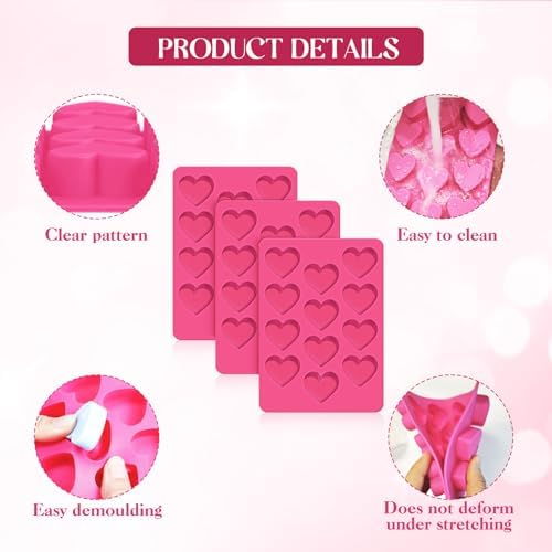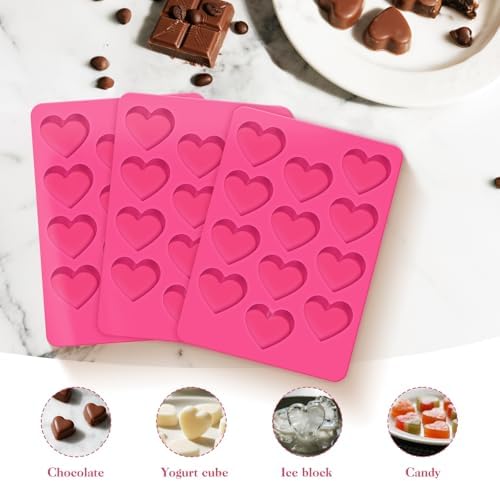 3Pcs Heart Molds Silicone, Premium Heart Silicone Mold for Baking, Chocolate, Non-stick Silicone Heart Mold for Cakes Candies Soap