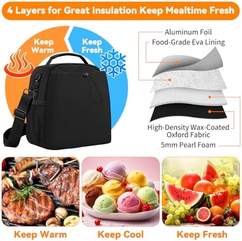 - 【Superior Insulation & Durable Material】Yotako insulated lunch bag for Men Women features premium four-layer thermal insulation system, combines high-density wax-coated Oxford fabric, 5mm PE foam, aluminum foil and a food-safe EVA lining—to keep meals hot or cold for hours,providing reliable insulation performance. Leakproof and easy to clean, it’s ideal for office commutes, picnics, or travel.