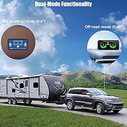 【Portable magnetic mounting】- Comes with two magnetic bases for easy mounting on an RV for leveling or on an ORV/SUV to detect vehicle tilt angle. Easily mount the transmitter as needed to ensure every trip is quick and easy. 【Six axis gyroscope accuracy】- With advanced unmanned level six axis technology, it has excellent accuracy in the measurement plane, simplifying leveling tasks and improving vehicle stability. 【Strong wireless signal】- Equipped with industrial grade transmitters, with a transmission distance of up to 150 feet. Its strong signal can penetrate the outer shell of the building, providing a stable and delay free connection for real-time monitoring. 【Extended battery life】- The built-in rechargeable battery provides 100 hours of transmitter operation time and 8 hours of monitor usage time. Equipped with automatic energy-saving mode to maximize battery life and reduce interruptions during travel. 【Easy to use】- Easy to install, easy to calibrate the level, no need to connect the phone or install APP when using, simple and hassle-free. 【Worry-free Guarantee】- If you have any questions about our products, you can contact us, our professional customer service team will give you a satisfactory answer within 24 hours.