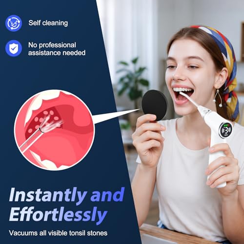 - Powerful & Precise Tonsil Stone Removal – This electric tonsil stone remover features 6 adjustable suction levels, ensuring thorough and painless removal of tonsil stones for improved oral hygiene.