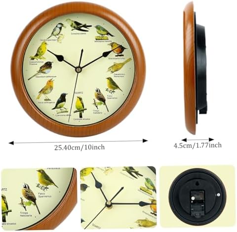 - Stylish Bird Dial Design: Featuring a dial with 12 different bird species, this bird sound clock adds a touch of nature-inspired elegance to your decor. The minimalist design enhances the aesthetic appeal of any room, making it a fashionable decor piece.