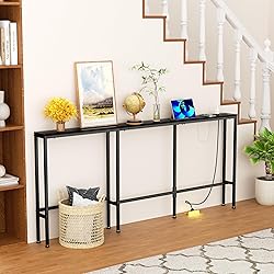 【Smart Charging Behind Your Sofa】Designed to fit behind your couch, this 70" extra-long sofa table features a built-in power outlets (2 AC outlets & 2 USB ports), plus a 4.9ft power cord. Conveniently charge your laptops, phones, lamps, and more—all within arm’s reach. 【Sturdy & Secure Structure】Built with high-quality engineered wood and a durable metal frame, this sofa table supports up to 220 lbs. Equipped with adjustable feet, an anti-tipping strap, and expansion screws, ensuring excellent stability and floor protection. 【Perfect Fit for Narrow Spaces】With its slim 78" design, this long console table is ideal for tight spaces behind couches, along hallways, or under windows. The rustic brown wood grain and industrial metal accents blend seamlessly with modern, farmhouse, or classic décor. 【Effortless Assembly】Assembling this entryway table is a breeze! Simply follow the easy-to-read instructions, using only the included hex wrench and screws—no extra tools required. 【Dedicated Customer Support】Enjoy peace of mind with our 24/7 online assistance and exceptional after-sales service. Whether you need help before purchase or after delivery, our team is always ready to assist you.