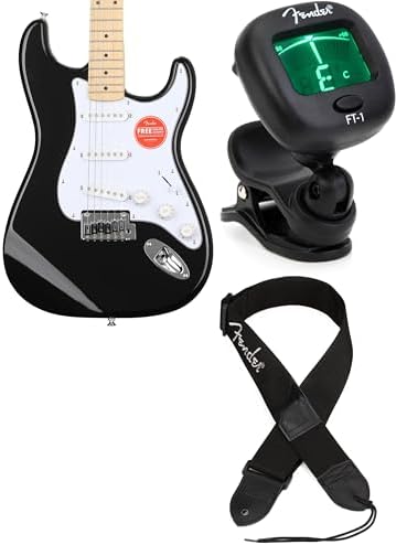 - Fender Accessories Included: Comes with a Fender FT-1 Pro Chromatic Clip-on Headstock Tuner for precise tuning and a durable Polyester Logo Strap in black with a gray logo, ensuring comfort and style. Perfect for beginners and professionals.