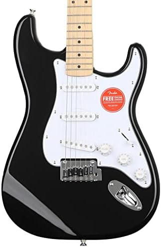 Fender Squier Affinity Series Stratocaster Electric Guitar - Black with Maple Fingerboard, Includes Guitar Tuner and Strap, Ideal for Beginners and Intermediate Players, Lightweight and Durable Design