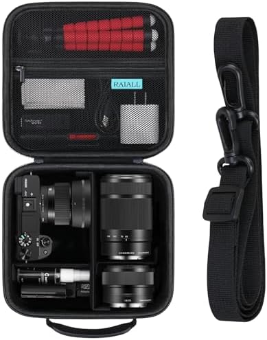 RAIALL Camera Case for Sony Alpha a6000/a6100/a6400/a6700/ Sony Alpha 7 II III IV/7R V Mirrorless Digital Camera and Lens, Vlogging Camera Hard Travel Bag with a Shoulder Strap and 3 Dividers, Black