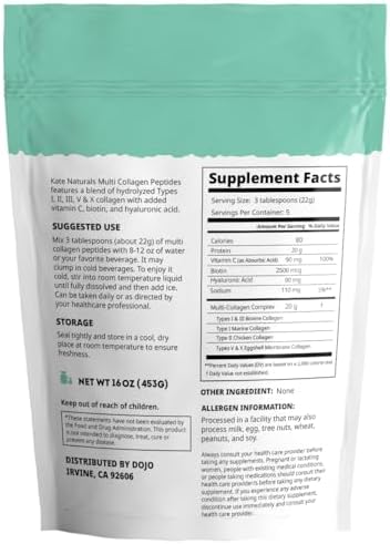 - 20G OF COLLAGEN PER SERVING: Kate Naturals' Multi-Collagen Peptides delivers 20 grams of hydrolyzed collagen peptides in every serving, providing Types I, II, III, V and X collagen.