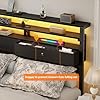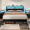 Furnulem Queen Bed Frame with Headboard & 2 Fabric Drawers, Bed Frame Queen Size Featuring LED Lights, Built-in Charging Station & Storage Shelves, Metal Slats, No Box Spring Needed – Black Oak