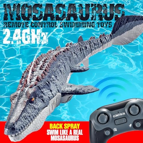 Remote Control Swimming Mosasaurus Toy, 2.4GHz Waterproof Design, 24-Inch Dinosaur Water Toy with Spray Function