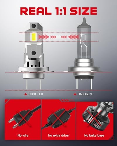 - 【ADVANCED BEAM PATTERN】Our all-in-one, mini-sized design matches halogen bulbs 1:1, eliminating dark spots, shadows, and glare. The precision-focused beam enhances your visibility without blinding oncoming drivers