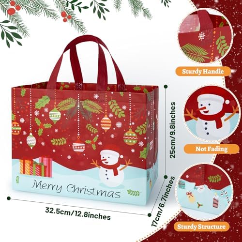 - 【High Quality Non Woven Christmas Bag】: The Christmas Tote bag is made of high quality non-woven material with a sturdy handle. More durable than traditional paper bags and less prone to tearing. The Christmas bag has a bright film layer on the surface to keep the surface pattern clear, waterproof, easy to wipe and reusable
