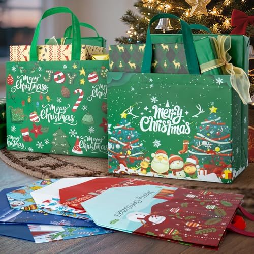 Iioscre 8 PCS Large Christmas Gift Bags With Handles, Non Woven Reusable Holiday Treat Bags for Gifts, 12.8 x 9.8 x 6.7in