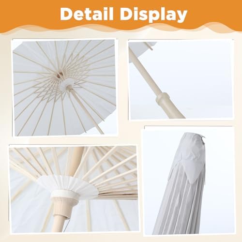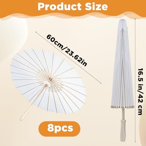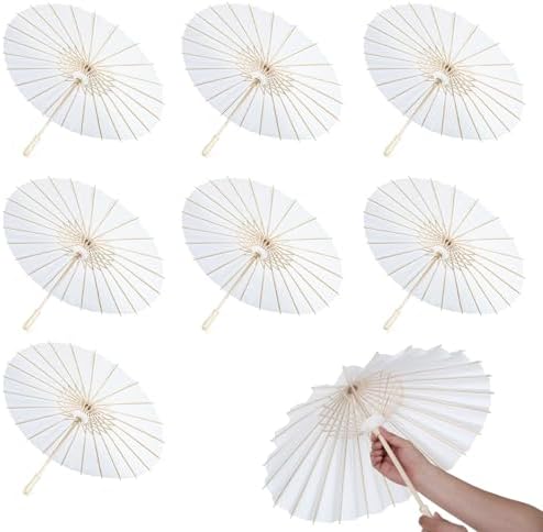 - Ample Quantity Package: Set of 8 blank white paper parasol umbrella (23.6 inches each). White umbrella for wedding crafted from smooth oiled paper on sturdy bamboo frames, these provide durable surfaces for painting while resisting deformation. Perfect for wedding guest activities or classroom crafts