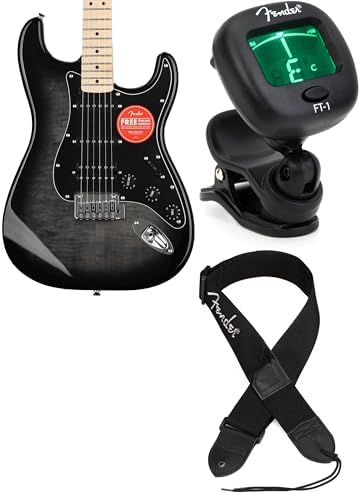 Fender Squier Affinity Series Stratocaster FMT HSS Electric Guitar - Black Burst Finish, Maple Fingerboard, Ideal for Beginners and Intermediate Players, Includes Tuner, Strap, and Vibrant Sound