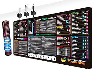 ✅MOST WIDE COMPILATION OF OUR EXCEL SHORTCUT CHEAT SHEET – Includes Most Popular And Financial Formulas, Pivot Tables, Error Tips & Excel Hacks. Master Your Workflow And Stay Efficient Every Day. ✅LARGE SIZE XL – Mouse Pad 31.5" x 11.8" x 0,11" (800 mm x 300 mm x 3mm) – Large Workspace Fits Keyboard And Mouse. Ideal For Office, Home Setup, Or Gaming Use. Smooth And Comfortable Surface. ✅03 CORD ORGANIZERS INCLUDED – Magnetic cable clips help manage wire, hold your cables and keep your space tidy. Strong adhesive backing lets you stick them securely to your desk, charging station, or any workspace surface. ✅WATERPROOF & SMOOTH SURFACE – Spill-Resistant Desk Mat Ensures Fast, Precise Mouse Movement. Great For Work Or Gaming. ✅DESK EXERCISES BUILT-IN – Features 11 Diagrams To Stretch And Stay Active. Refresh Focus During Long Work Or Gaming Sessions Perfect For A Quick Break Whenever You Need To Stretch And Power Your Sheet! ✅GREAT GIFT FOR PROFESSIONALS – Invite You To Enjoy During Game Of Words “Excel-Lence In Every Project, "Keep Your Sheets Together” Adds Humor To Workspace And Makes A Great Gift For Any Spreadsheet Pros, Coworkers, Friends Or Family. ✅NON-SLIP RUBBER BASE – Durable Rubber Bottom Grips Surfaces To Prevent Sliding. Stay Focused Without Distractions. ✅PREMIUM QUALITY PRINT With Highly Durable Inks, The Desk Mat Displays Sharp And Distinct Details, Ensuring It Remains Unfaded Even After Numerous Cleanings. ✅DURABLE – Protects Your Desktop From Scratches, Dents And Spills. It Is Easy To Clean, Simply Wipe Off Stains With Wet Cloth. ✅UNIQUE DESIGN – Features a stylish and colorful keycap layout that adds a vibrant and modern touch to your workspace, making it both functional and visually appealing