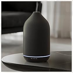 SALKING 200ml Ceramic Diffuser, Stone Essential Oil Diffuser, Ultrasonic Aromatherapy Diffusers with 7-Color LED Lights Timers, for Office Bedroom Home (Black)