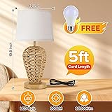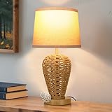 LEDIKON Boho Table Lamp,Touch Control & 3 Way Dimmable, 100% Hand Woven Rattan Coastal Farmhouse Bedside Nightstand Lamp for Bedroom, Living Room, Office (Bulb Included)