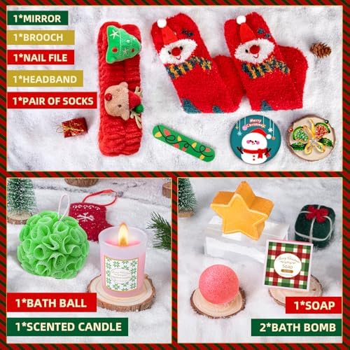 - 24 Days of Luxury Skincare Surprises: Dive into festive fun with this bath and body advent calendar for women and teen girls. Each day reveals silky body scrubs, calming bath salts, nourishing creams, bath bombs, Christmas stockings, playful accessories, and a scented candle. Celebrate joy and warmth this holiday season