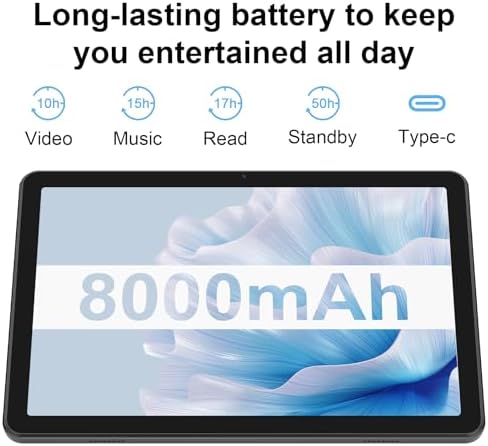 - 🎮LONG-LASTING BATTERY LIFE:Built-in 8000mAh large capacity battery, combined with Android 15 smart power management, provides extended usage time. Enjoy streaming, browsing, and gaming during commutes, travels, or home leisure without frequently searching for charging outlets.