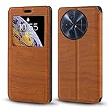 Shantime Viewable Window Leather Flip Case Compatible with TCL 60 XE NXTpaper 5G, Elegant Design Clear Display Invisible Magnetic Cover and Card Slot(Brown)