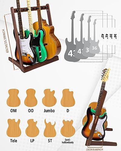 - Room for All Your Guitars – Organize up to 5 electric guitars or basses at once, or 3 acoustic guitars. The redesigned frame easily fits most instruments over 36", from classic ST and LP styles to dreadnoughts, parlors, basses, and banjos.