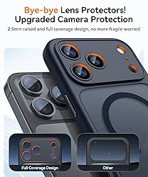 Perfect Compatibility: specifically designed for iPhone 17 Pro 6.3 inches (3 Camera Version). Tip: The translucent matte design on the back panel creates different visual effects that are influenced by the color of your phone Upgraded Full Coverage Camera Protection: full coverage protection for the camera, with a 2.5 mm raised border around the lens. It provides comprehensive protection for the lens without affecting photography Powerful Magnetic Attraction: compatible with MagSafe and Qi wireless chargers. It securely connects to magnetic accessories like wallets, power banks, and car mounts for a stable connection during rotation or movement Matte Texture & Silky Feel: crafted with flexible TPU frame and hard PC back with matte coating for premium touch. Non-slip, anti-fingerprint, easy to clean. Supports wireless charging and available in various colors to match your style Excellent Anti-drop Capability: made of thick shockproof TPU material for enhanced drop resistance. Each corner has shock-absorbing airbags for extra protection