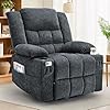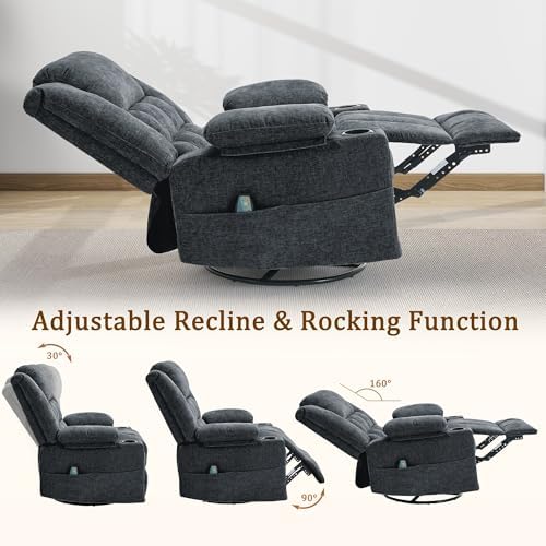 360° Swivel Rocker Recliner for Adults, Nursery Glider Recliner with Massage and Heating, Rocking Chair with Cup Holder, Manual Recliner Chair for Living Room, Bedroom (Fabric, Dark Gray)